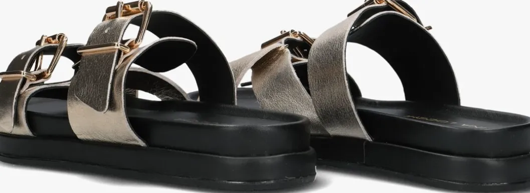Stap in stijl met de goudkleurige LED 2 BAND SLIPPER DZ van LINA LOCCHI. Deze trendy slippers zijn gemaakt van hoogwaardig leer, zowel aan de binnen- als buitenkant. Met een ronde neus en goudkleurige gespsluitingen zijn ze niet alleen comfortabel, maar ook helemaal on-trend. De rubberen zool zorgt voor grip en stabiliteit. LINA LOCCHI staat bekend om haar kwalitatieve en modieuze schoenen, perfect voor de moderne vrouw.