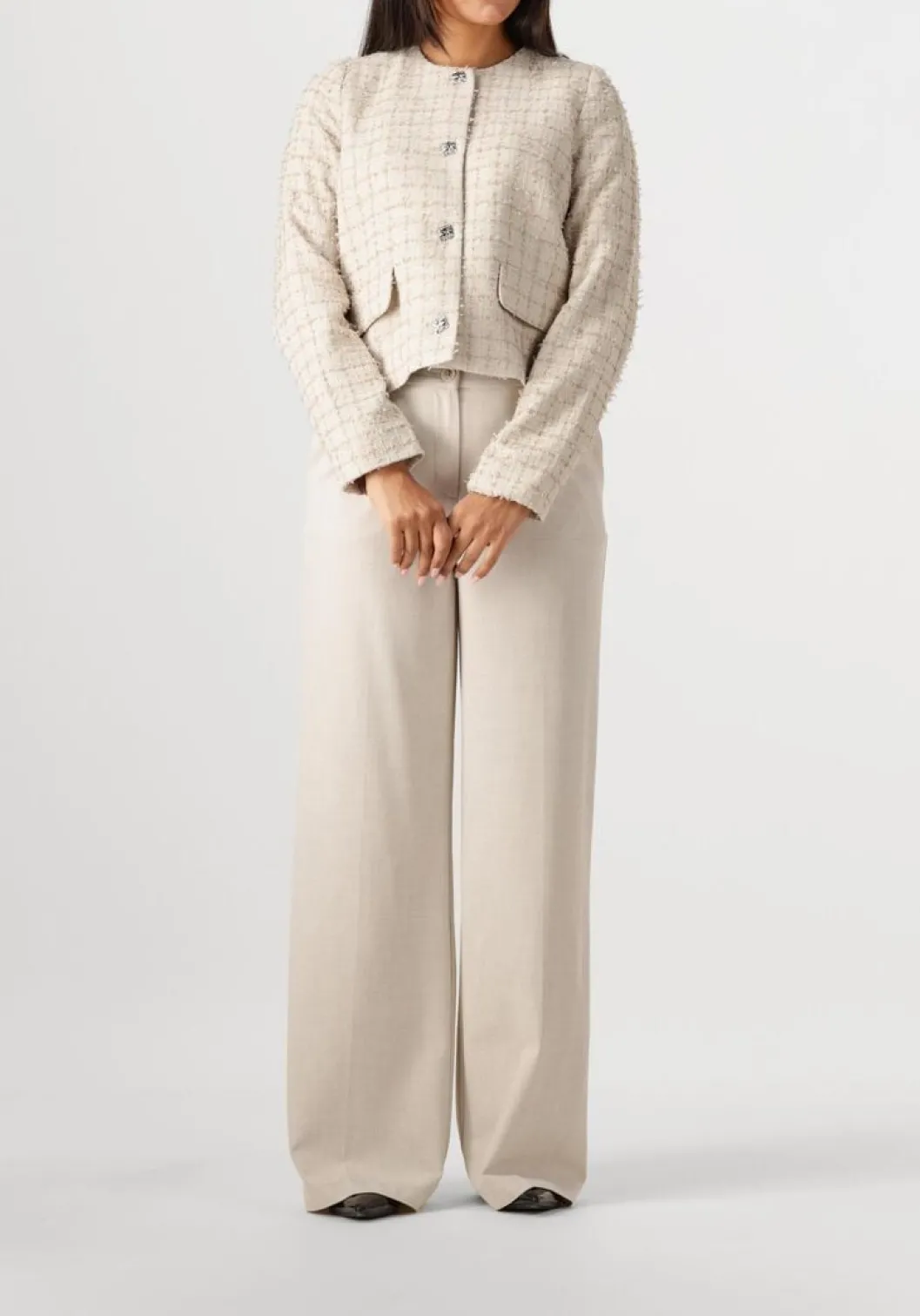 Ontdek de AILA BOUCLE JACKET, een stijlvolle toevoeging aan je garderobe. Deze zandkleurige jas van CO’COUTURE straalt elegantie uit en is perfect voor dames die houden van een verfijnde look. De zachte bouclé stof voelt heerlijk aan en biedt comfort zonder in te boeten op stijl. Combineer deze jas moeiteloos met een donkere jeans en een paar enkellaarsjes voor een chique, casual uitstraling. Voeg een lichte sjaal toe voor een extra vleugje flair. Een must-have voor elke modebewuste dame!