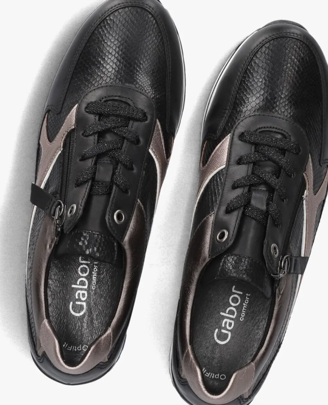 Stap stijlvol de dag in met deze zwarte lage sneakers van GABOR, model 526. Gemaakt van hoogwaardig leer, zowel aan de buiten- als binnenkant, bieden deze sneakers ultiem comfort dankzij het uitneembare voetbed. De ronde neus en rubberen zool zorgen voor een casual, maar toch chique uitstraling. Perfect voor een dagje shoppen of een ontspannen wandeling in het park. Combineer ze moeiteloos met een strakke jeans of een luchtige zomerjurk voor een trendy look. De handige rits maakt aan- en uittrekken een fluitje van een cent. Voeg een vleugje glamour toe aan je dagelijkse outfit met deze veelzijdige sneakers.