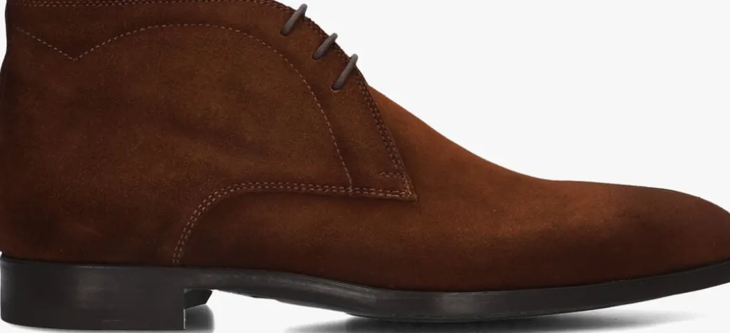 Gecombineerde suède veterboot voor heren van het Spaanse merk Magnanni, speciaal gemaakt voor Van den Assem. Deze hoge veterschoen is voorzien van een derby sluiting en dunne, gewaxte veters. De smalle belijning van de carré neus en het decoratieve stikselwerk rond de schacht maken dit ontwerp compleet. Het binnenwerk is volledig met leer gevoerd, een suède contrefort draagt bij aan extra loopcomfort. De rubberen loopzool heeft een fijn profiel en bevat een metalen merkembleem.