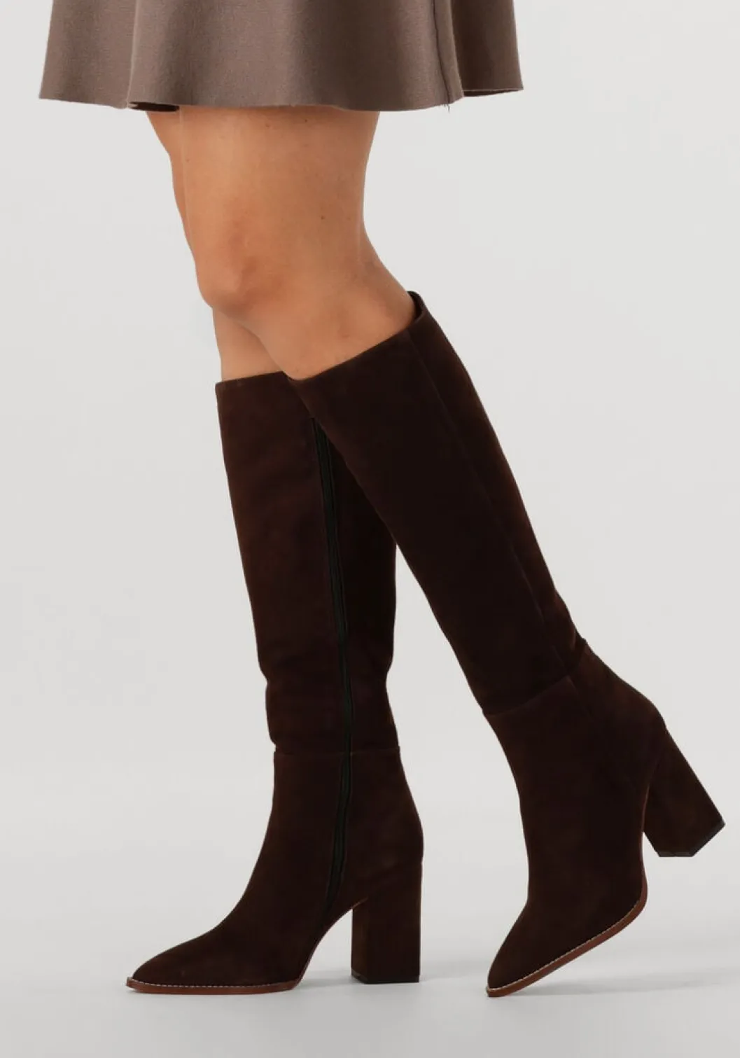 Stap stijlvol de herfst en winter in met deze prachtige hoge laarzen van NOTRE-V. De 46994 laarzen hebben een elegante puntige neus en een comfortabele blokhak van 9 cm. De buitenkant is gemaakt van zacht suède in een warme bruine tint, terwijl de binnenkant van leer je voeten heerlijk omhult. De stevige rubberen zool zorgt voor grip tijdens een herfstwandeling in het park of een gezellige winterse stadswandeling. Combineer deze laarzen met een knusse wollen jurk of een stijlvolle trenchcoat voor een complete look. De rits aan de zijkant maakt het aan- en uittrekken eenvoudig. Een must-have voor elke damesgarderobe!