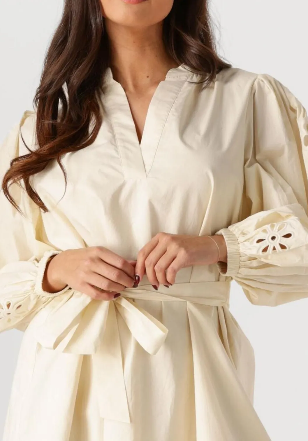 Ontdek de zomerse charme van de DIVIANA mini jurk in een elegante ecru tint. Perfect voor zonnige dagen in het park of een stijlvolle brunch met vriendinnen. Deze jurk van IBANA straalt eenvoud en verfijning uit, met een snit die je figuur prachtig accentueert. Combineer met een paar sandalen en een strohoed voor een casual look, of draag met hakken en een clutch voor een avondje uit. De luchtige stof zorgt voor comfort, zelfs op de warmste dagen. Een veelzijdige toevoeging aan je garderobe die moeiteloos te combineren is met je favoriete accessoires.