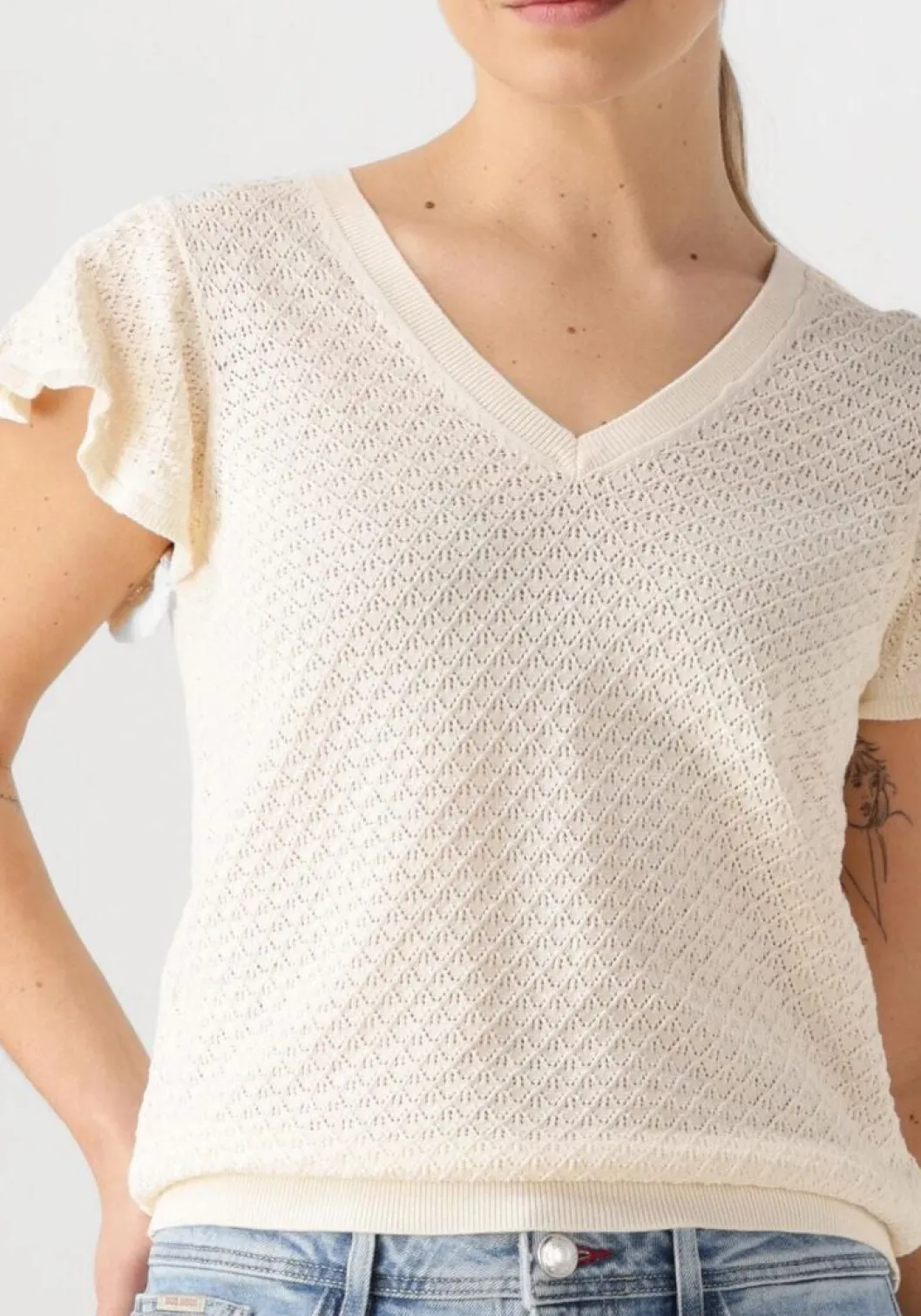 Be the first to review “ecru mos mosh top mmganna pattern v-neck knit”