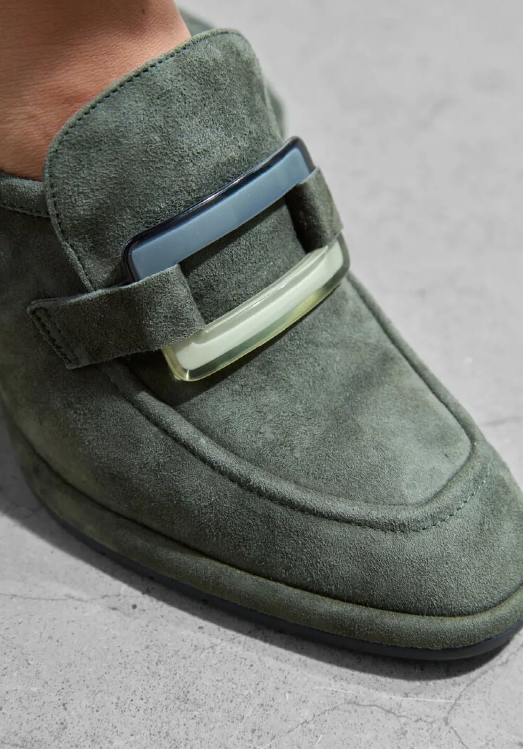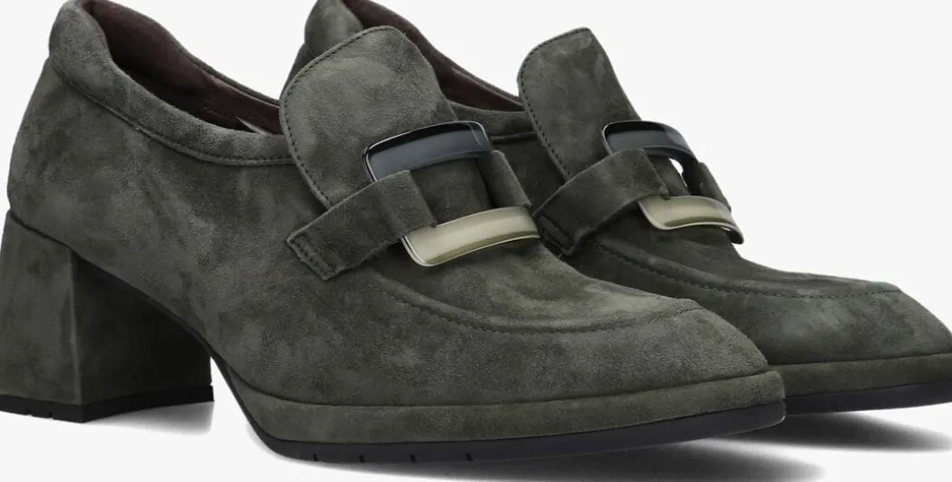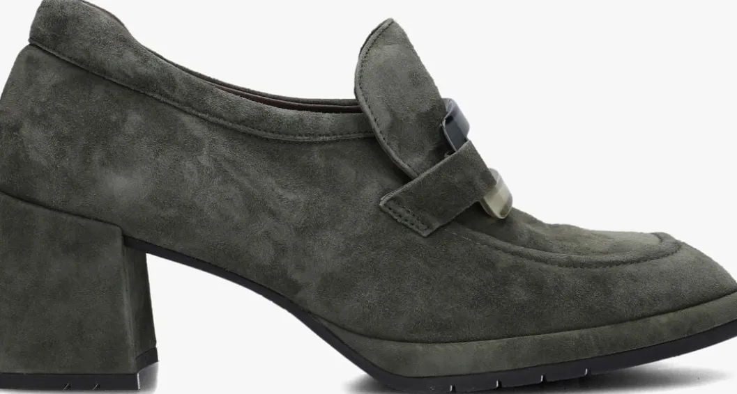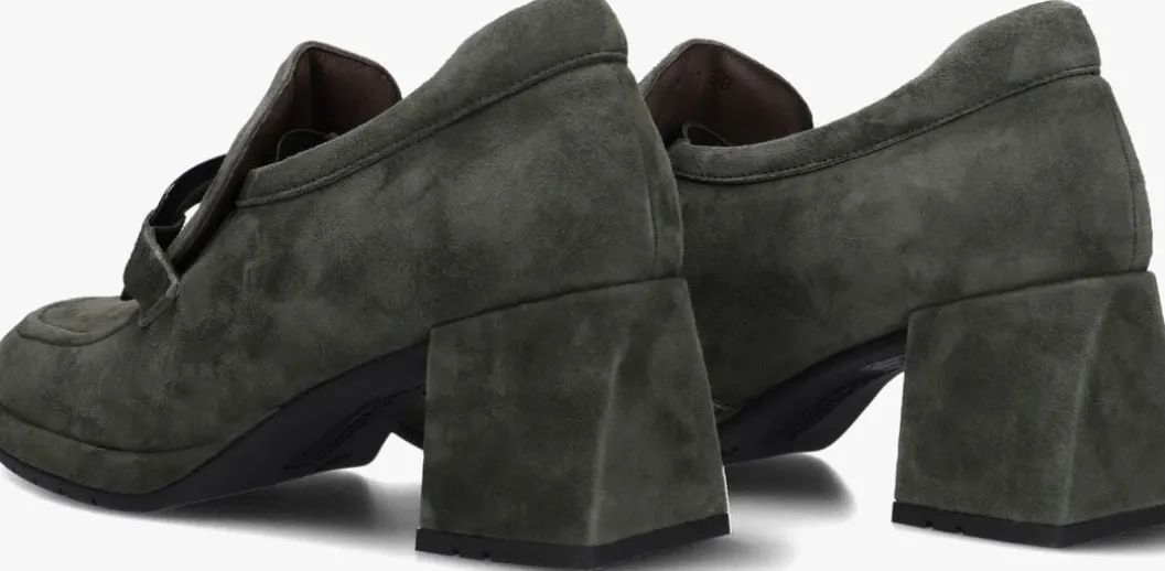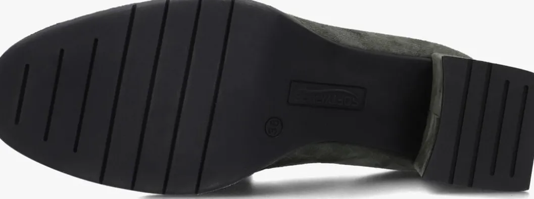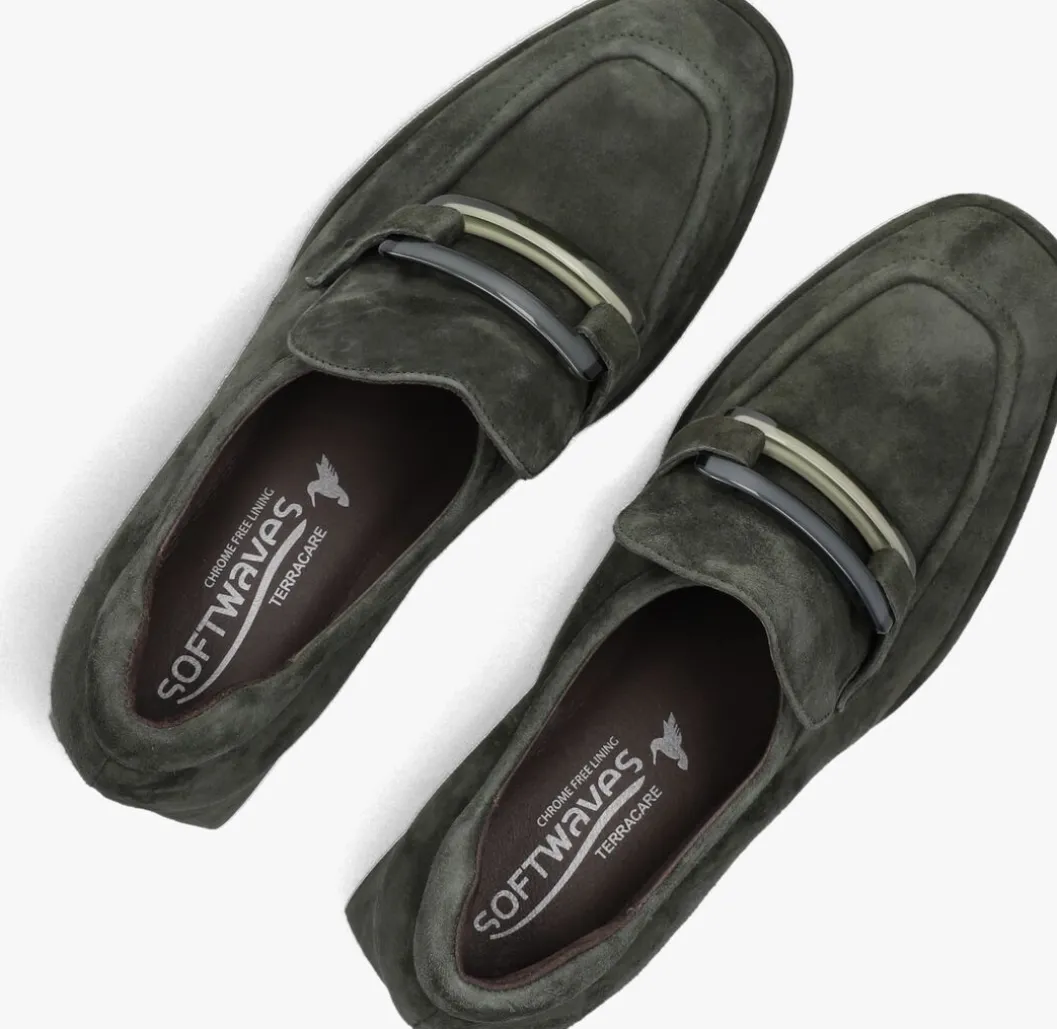 Loafer met gesp en hak voor dames van het merk Softwaves. Deze suède instapschoen met rechte neus is uitgevoerd in groen suède. Op de neus bevindt zich een gesp tevens in groen. De binnenzijde is uitgevoerd in leer en een suède contrefort draagt bij aan het loopgemak. Het uitneembare voetbed is te vervangen door een persoonlijke inlegzool. De rubberen loopzool heeft een medium profiel en de hak meet circa 5 cm.