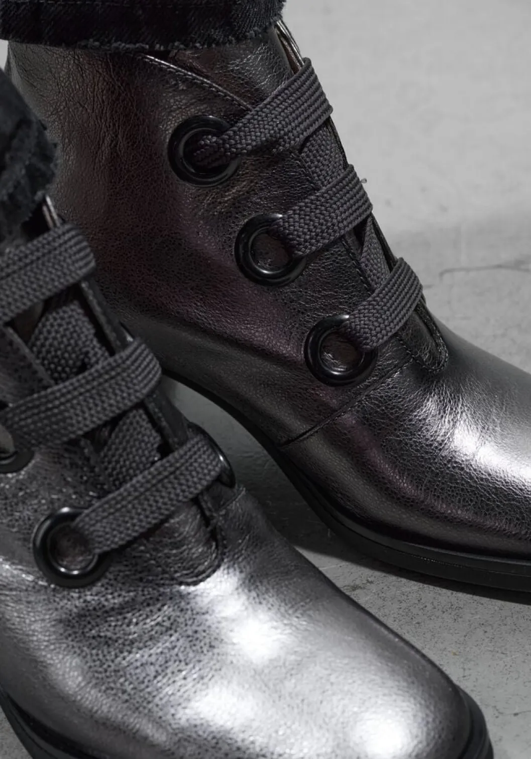 Maak kennis met de schitterende enkellaarzen HI243635 van HISPANITAS. Deze zilverkleurige pareltjes zijn een must-have voor elke stijlvolle dame. Gemaakt van hoogwaardig leer, bieden ze niet alleen een luxe uitstraling maar ook ultiem comfort. Opvallend zijn de grove veterringen, de brede veters en de houtlook blokhak. De stevige rubberen zool zorgt voor een goede grip en maakt ze perfect voor dagelijks gebruik. Combineer ze met je favoriete outfit en straal zelfvertrouwen uit. HISPANITAS staat bekend om zijn vakmanschap en oog voor detail. Elk paar schoenen wordt met zorg en passie vervaardigd.