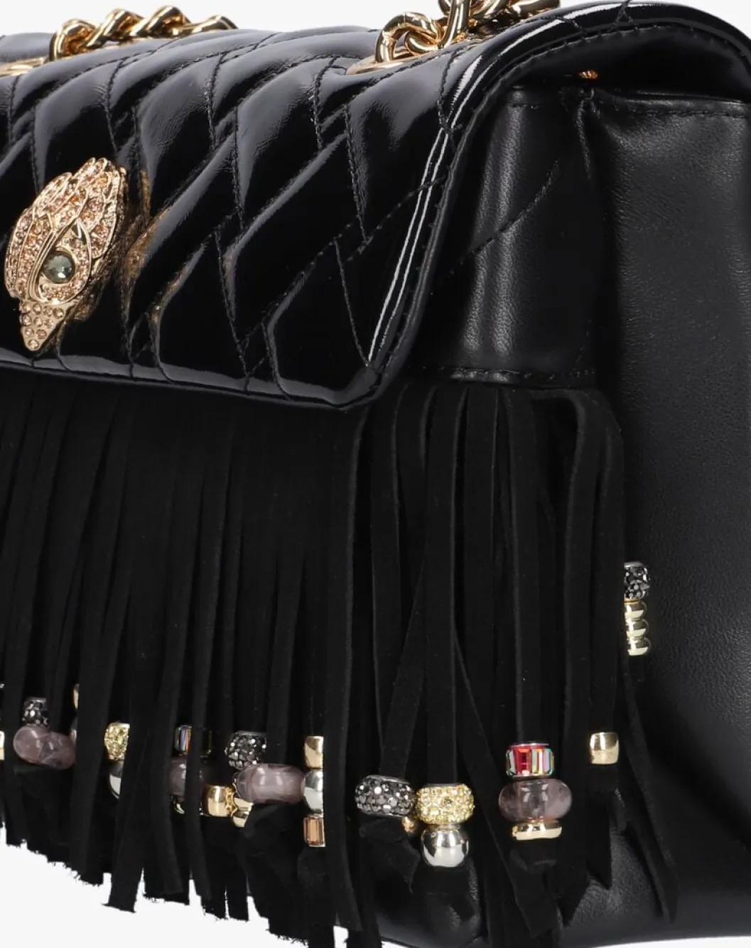 Ontdek de KENSINGTON FRINGE BAG van KURT GEIGER LONDON, een stijlvolle schoudertas voor dames. Deze zwarte tas is perfect voor het herfst- en winterseizoen. Gemaakt van soepel leer en voorzien van speelse franjes, voegt deze tas een vleugje flair toe aan elke outfit. De tas biedt voldoende ruimte voor al je essentials en is ideaal voor dagelijks gebruik. KURT GEIGER LONDON staat bekend om zijn unieke ontwerpen en aandacht voor detail, waardoor je altijd verzekerd bent van een modieuze look.