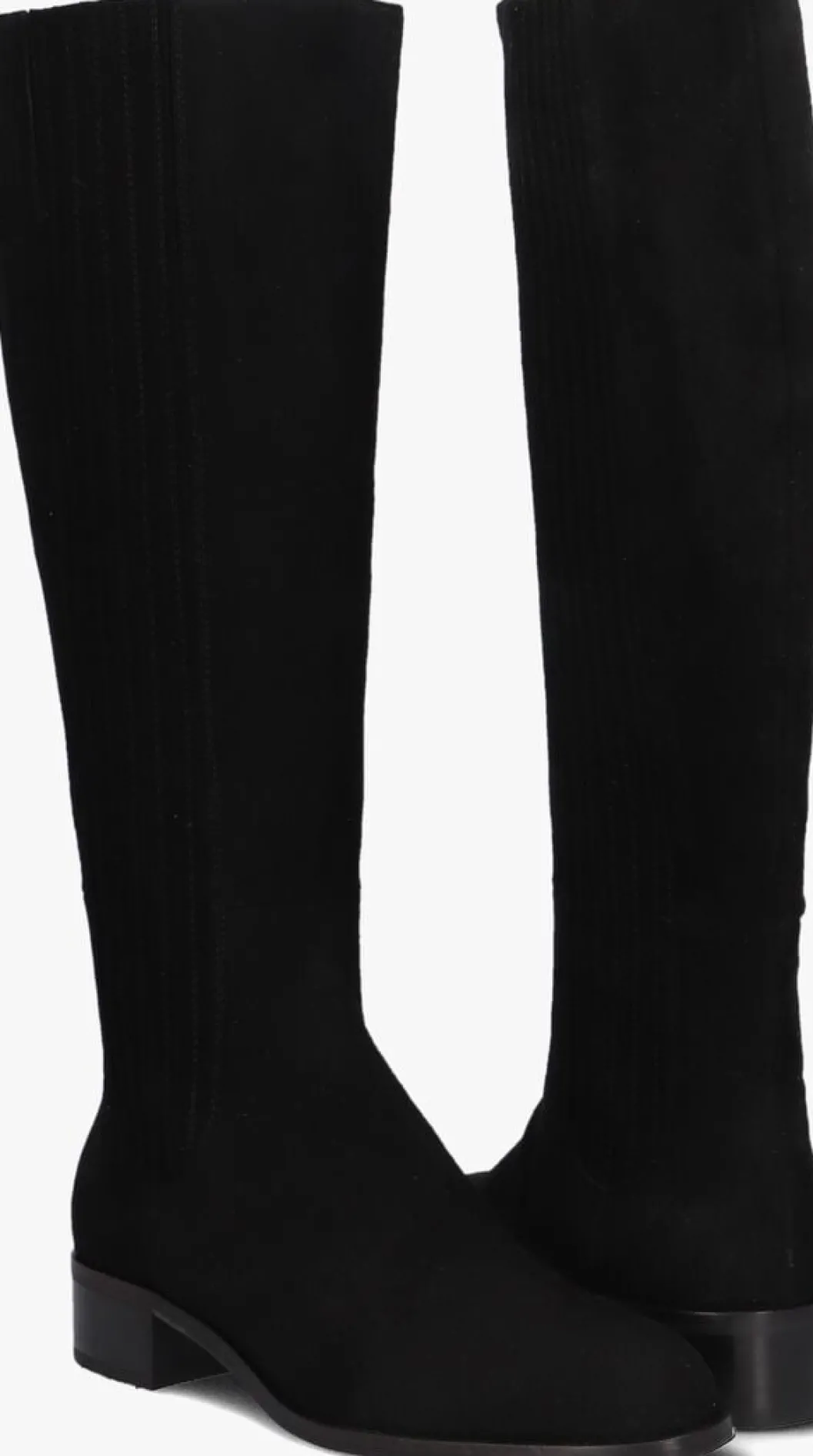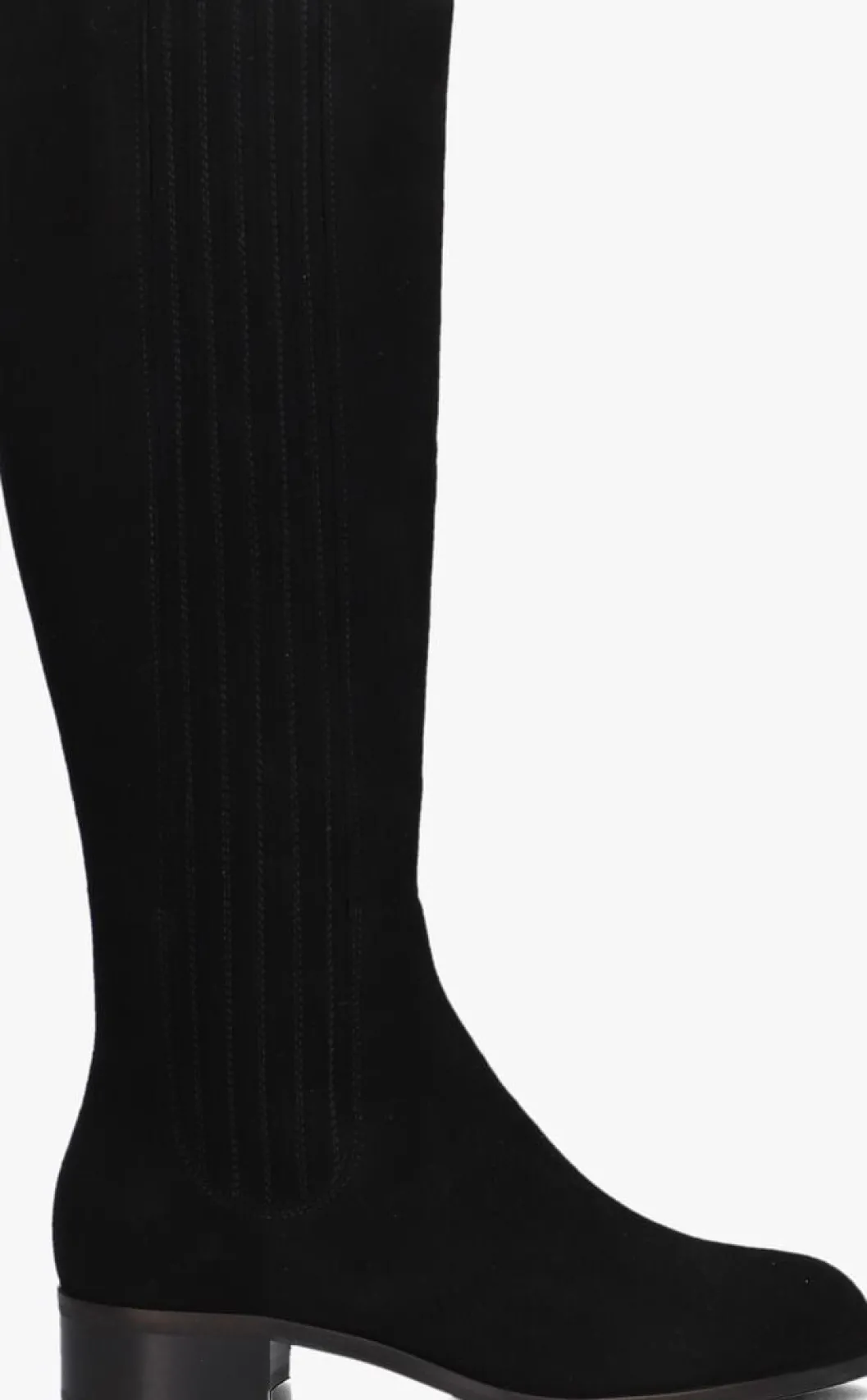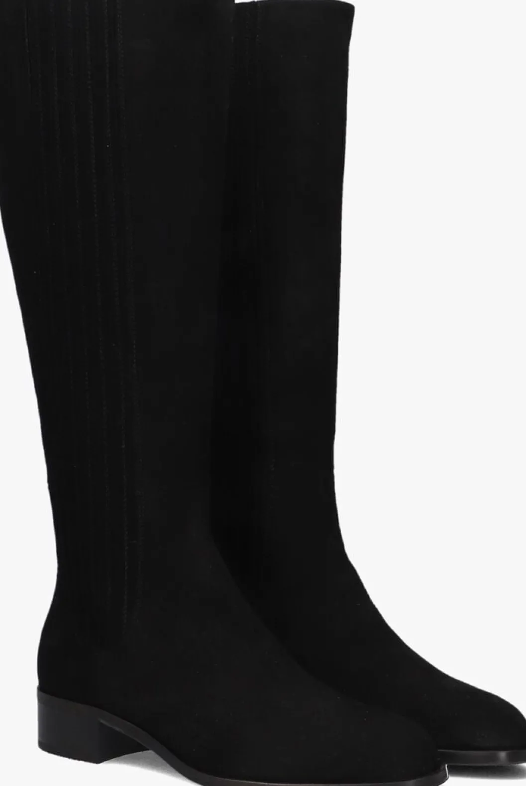 Hoge suéde laars voor dames van het merk Marcos Nalini. Deze hoge laars met ronde neus is uitgevoerd in zwart suéde. Weerszijden van de schacht bevatten elastiek voor het soepel aan- en uittrekken. De binnenkant is uitgevoerd in leer en een stevig contrefort draagt bij aan het loopgemak. De rubberen loopzool heeft een medium profiel en de hak meet circa 3 cm.