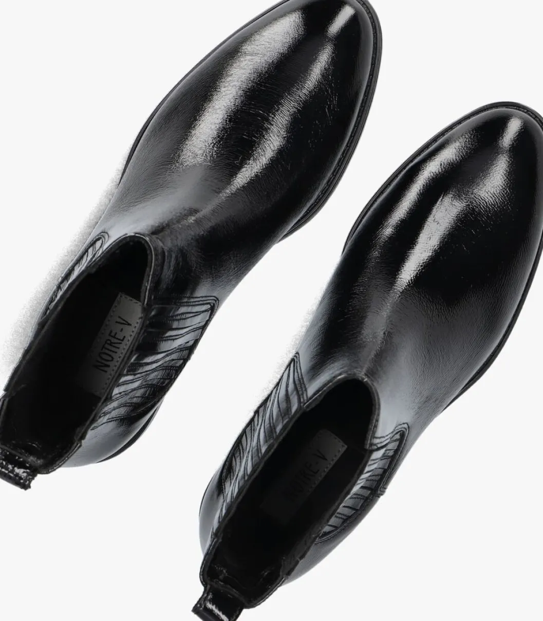 Stap stijlvol de dag in met deze zwart Chelsea boots, model 2SERA208, van het merk NOTRE-V. Gemaakt van hoogwaardig lakleer, bieden ze zowel comfort als een tijdloze uitstraling. De ronde neus en de schachthoogte van 15 cm geven een speelse touch aan je outfit. De binnenkant combineert leer en textiel voor een aangename pasvorm, terwijl de rubberen zool zorgt voor grip en duurzaamheid. De boots hebben een gemakkelijke aan en uittrek door het elastische paneel. Perfect voor een dagje shoppen of een ontspannen wandeling in het park. Combineer ze moeiteloos met een skinny jeans of een stijlvolle rok voor een elegante look. Deze boots zijn een must-have voor elke dame.