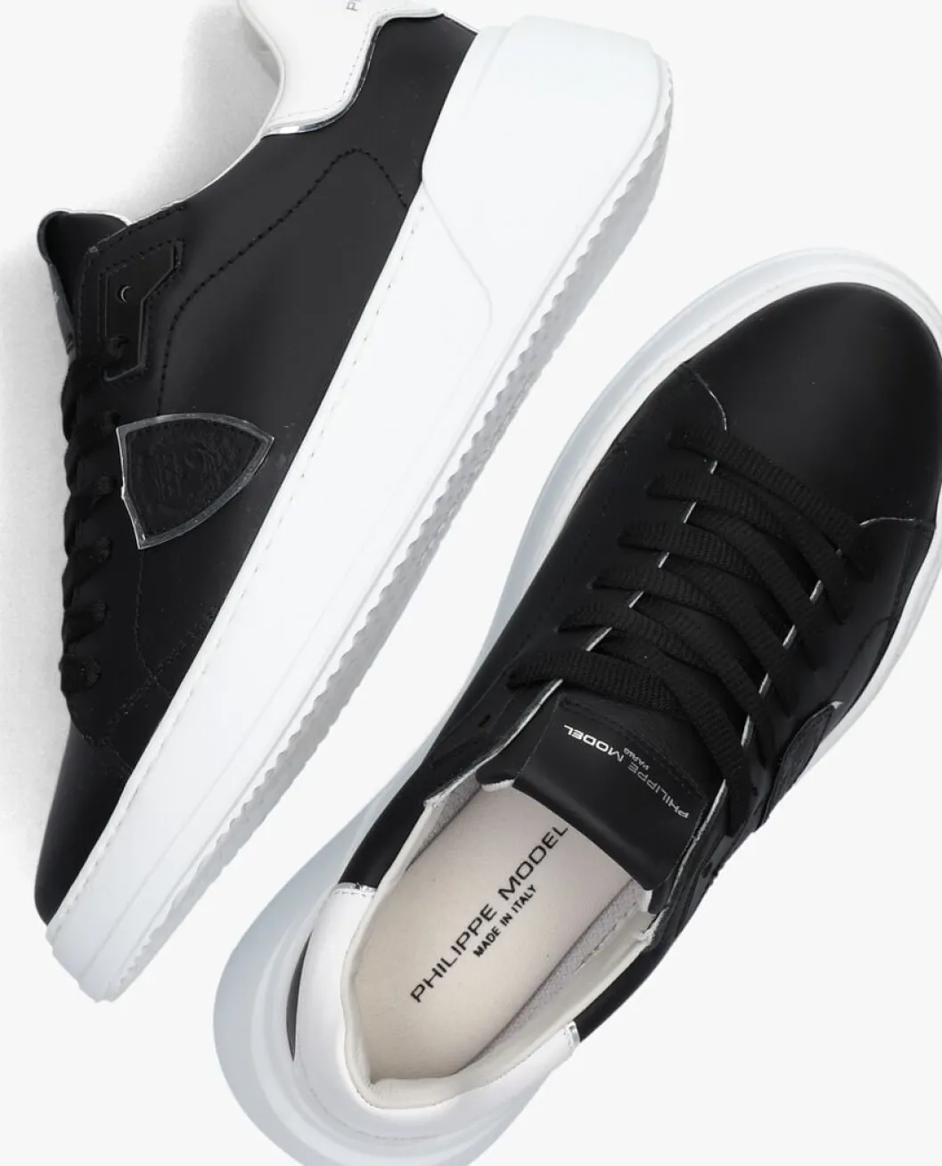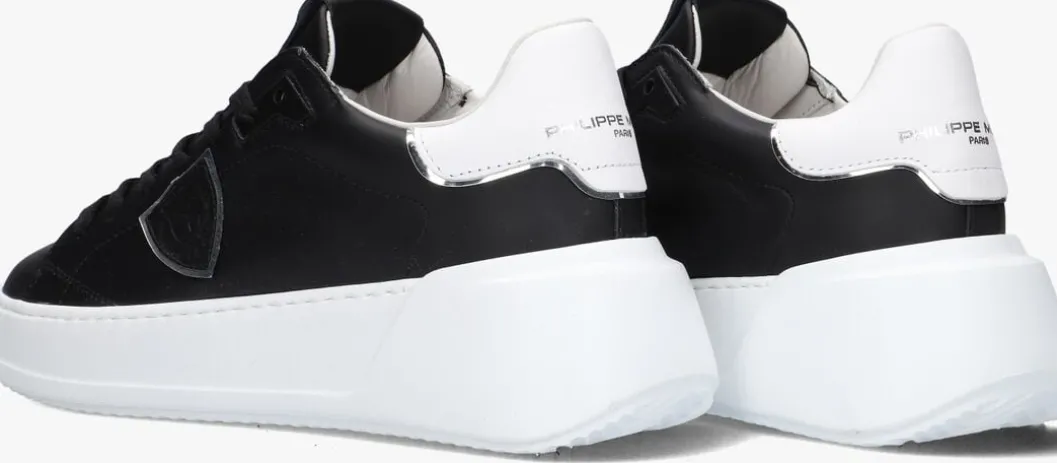 Damesschoen model New temple in de kleur zwart van Philippe Model. Deze lage runner is uitgevoerd in leer in de kleur zwart. De achterbies en de instap is uitgevoerd in wit. De binnenzijde is uitgevoerd in leer en een suède contrefort draagt bij aan het loopgemak. De rubberen loopzool heeft een grof profiel voor stevige grip.